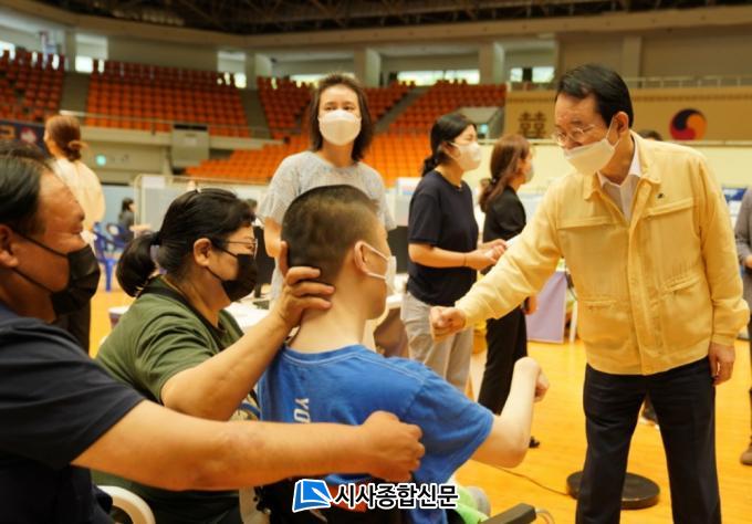 [½Ã»çÁ¾ÇսŹ® = ¿À½ÂÅà ±âÀÚ] ±èÁ¾½Ä ¸ñÆ÷½ÃÀåÀÌ Äڷγª19 ¿¹¹æÁ¢Á¾ ÇöÀåÀ» ¹æ¹®ÇØ ±Ù¹«ÀÚ¿Í Á¢Á¾ ´ë»óÀÚ¸¦ °Ý·ÁÇß´Ù.