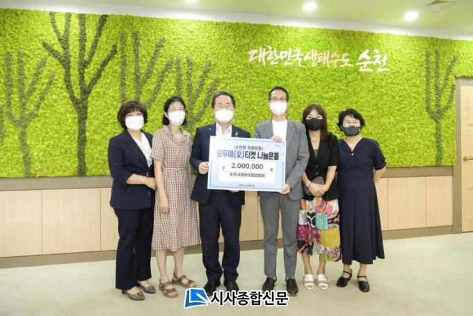 ¡®¸ðµÎ°¡ ÇÔ²² ¾î¿ï·Á ÆòµîÇÏ°Ô »ì¾Æ°¡´Â ¼øÃµ½Ã¸¦ ¸¸µéÀÚ¡¯´Â ½½·Î°ÇÀ» ³»¼¼¿î ¶æ±íÀº ³ª´® ¿îµ¿¿¡ ³óÇùÀºÇà(ÁÖ)¼øÃµ½ÃÁöºÎ, ¼øÃµ½Ã¾î¸°ÀÌÁý¿¬ÇÕȸ, (»ç)´ëÇѳëÀÎȸ¼øÃµ½ÃÁöȸ µî °ü³» ±â°ü¡¤´Üü ¹× ±â¾÷µéÀÌ Æ¼ÄÏ ±âºÎ¿¡ ¾ÕÀå¼ÁÖ¾ú°í, ÃʵîÇлýºÎÅÍ Àα٠ÁöÀÚü Áֹεé±îÁö °¢°è°¢ÃþÀÇ ½Ã¹ÎµéÀÌ Æ¼ÄÏ ±âºÎ¿¡ µ¿ÂüÇØÁÖ¾î ÀÏÁÖÀϰ£ ÃÑ 3,000¿© ¸¸¿øÀÌ ¸ð±ÝµÆ´Ù.