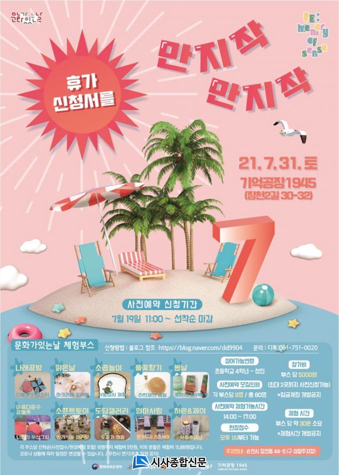 µðÅõ¹®È°øµ¿Ã¼°¡ ÁÖ°üÇÏ´Â À̹ø ¡®ÈÞ°¡½Åû¼¸¦ ¸¸ÁöÀÛ¸¸ÁöÀÛ¡¯Çà»ç´Â ±â¾ïÀ» ¶°¿Ã¸®´Â ¸Å°³ÀÎ ¿À°¨ Áß Ã˰¢À» ÁÖÁ¦·Î ÇÏ¿© ÇǺηΠ´À³¥ ¼ö ÀÖ´Â ½Ã¿øÇÔ°ú ¹Ý·Á½Ä¹°, ÈÞ°¡, ÈÞ½ÄÀ» ÁÖÁ¦·Î ´Ù¾çÇÑ ÇÁ·Î±×·¥À» ÁøÇàÇÑ´Ù.