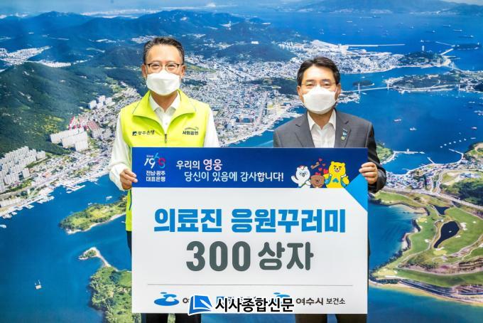 ¿¬ÀÏ À̾îÁö´Â Æø¿° ¼Ó¿¡¼µµ Äڷγª19 4Â÷ ´ëÀ¯Çà È®»ê ¹æÁö¿Í Ä¡·á¸¦ À§ÇØ ÃÖÀü¼±¿¡¼ Èû¾²°í ÀÖ´Â ÀÇ·áÁø¿¡°Ô °¨»ç¿Í ÀÀ¿øÀÇ ¸Þ½ÃÁö¸¦ Àü´ÞÇϰíÀÚ ¼ÛÁ¾¿í ±¤ÁÖÀºÇàÀå°ú ÀÓÁ÷¿øµéÀº ¡®ÀÀ¿ø²Ù·¯¹Ì¡¯ 300»óÀÚ¸¦ Á÷Á¢ Á¦ÀÛÇÏ´Â ºÀ»çȰµ¿À» ÀÚüÀûÀ¸·Î ÁøÇàÇß´Ù.