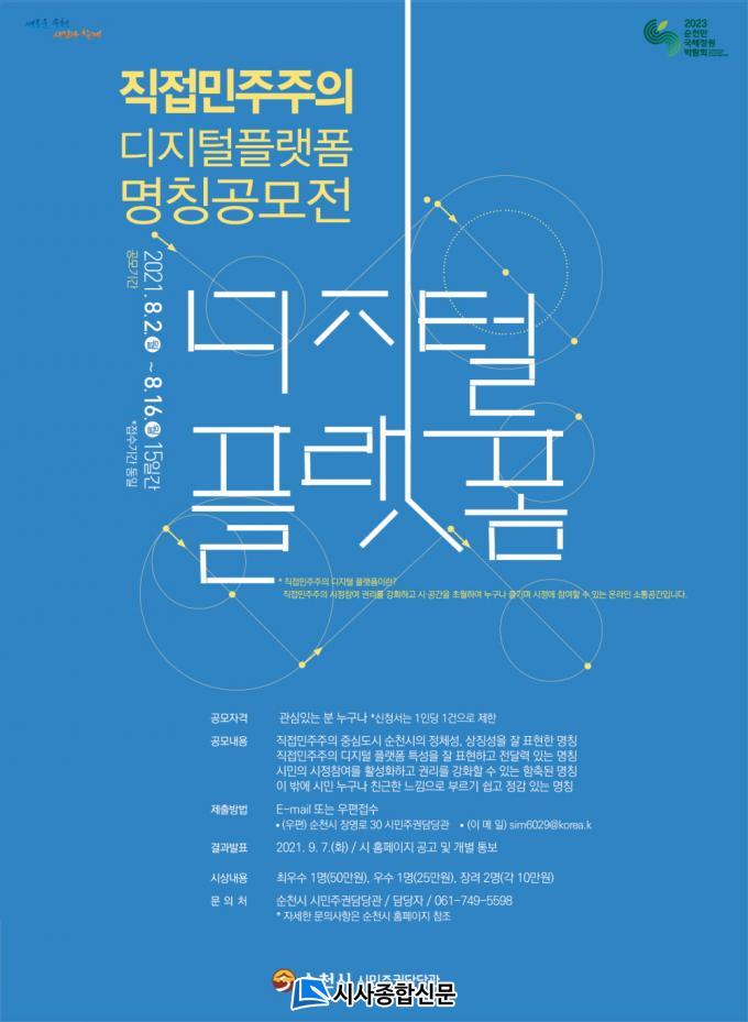 ÀÌ¿¡ À̹ø °ø¸ð¸¦ ÅëÇØ ¡®¼øÃµÇü Á÷Á¢¹ÎÁÖÁÖÀÇ µðÁöÅÐ Ç÷§Æû¡¯°ú ¡®Á÷Á¢¹ÎÁÖÁÖÀÇ Á߽ɵµ½Ã ¼øÃµ¡¯ÀÇ Á¤Ã¼¼ºÀ» Àß Ç¥ÇöÇϰí, ´©±¸³ª ½±°Ô ÀÌÇØÇϰí Ä£±ÙÇÏ°Ô °ø°¨ÇÒ ¼ö ÀÖ´Â ¸íĪÀ» ¼±Á¤ÇÑ´Ù´Â ¹æÄ§ÀÌ´Ù.