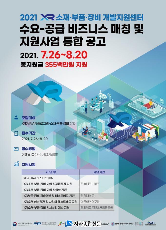 6ÀÏ ÀüºÏµµ´Â XR ¼ÒÀçºÎǰÀåºñ °³¹ßÁö¿ø¼¾Å͸¦ ÅëÇØ XR±â¾÷ °£ ºñÁî¸ÅĪ, ½ÃÁ¦Ç°Á¦ÀÛ Áö¿ø, »ç¾÷È Áö¿ø, XR¾×¼¼¼¸® °³¹ßÁö¿ø µî 2021³â XR ¼ö¿ä-°ø±Þ ºñÁî¸ÅĪ ¹× »ç¾÷ÈÁö¿ø »ç¾÷À» ÃßÁøÇÑ´Ù°í ¹àÇû´Ù.