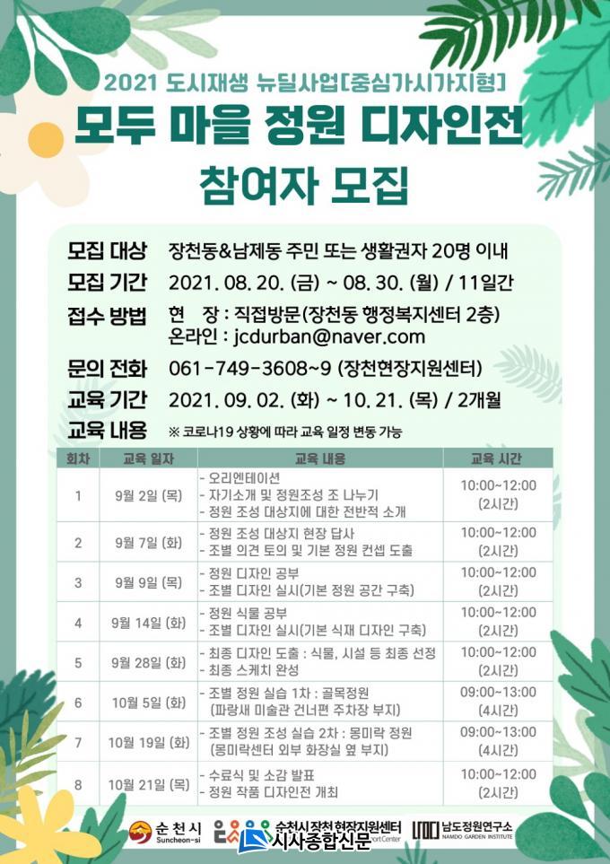 ÇÑÆí, ¡®2021 Á¤¿ø ÀÛǰ µðÀÚÀÎÀü¡¯ ±³À°¿¡ °üÇÑ ±âŸ ÀÚ¼¼ÇÑ »çÇ×Àº ¼øÃµ½Ã µµ½ÃÀç»ý°ú(061-749-3472) ¶Ç´Â ÀåõÇöÀåÁö¿ø¼¾ÅÍ(061-749-3608~9)·Î ¹®ÀÇÇÏ¸é µÈ´Ù.