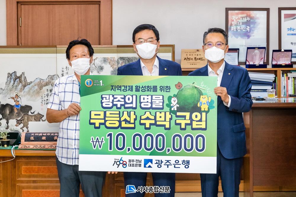 - ±¤ÁÖÀºÇà ¼ÛÁ¾¿í ÀºÇàÀå(»çÁø ¿À¸¥ÂÊ)ÀÌ ±¤ÁÖ ºÏ±¸Ã»¿¡¼ ±¤ÁÖÀÇ ¸í¹°ÀÎ ¹«µî»ê ¼ö¹Ú 1õ¸¸¿ø ±¸ÀÔÀ» ÅëÇØ, Áö¿ª »ó»ý¹ßÀüÀÇ ¶æÀ» ¸ðÀ¸°í ÀÖ´Ù.