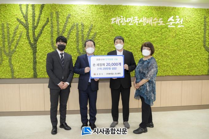 [½Ã»çÁ¾ÇսŹ® = Àå¹Î±Ô ±âÀÚ] ¢ß¸ÞŸ·¦½º ÄÚ½º¸Þƽ(´ëÇ¥ ½Å½ÂÈ£)ÀÌ Áö³ 24ÀÏ ¾à 1¾ï2õ¸¸¿ø »ó´çÀÇ Äڷγª19 ¹æ¿ª¿ëǰÀ» ¼øÃµ½Ã¿¡ ±âÁõÇß´Ù. À̳¯ ±âÁõµÈ ¹°Ç°Àº ÈÞ´ë¿ë ¼Õ¼¼Á¤Á¦ 2¸¸°³·Î, ½Ã´Â º¹Áö½Ã¼³°ú °æ·Î´ç, ´ÙÁßÀÌ¿ë½Ã¼³ µî¿¡ ¹èºÎÇÒ °èȹÀÌ´Ù.
