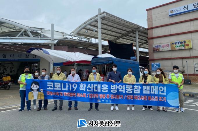 [½Ã»çÁ¾ÇսŹ® = ¿À½ÂÅà ±âÀÚ] ¹«¾È±º(±º¼ö ±è»ê)Àº Áö³ 24ÀÏ Äڷγª19 È®»ê ¹æÁö¸¦ À§ÇØ ¹«¾ÈÀ¾ ÀüÅë½ÃÀå¿¡¼ Ưº° ¹æ¿ª´ëÃ¥ È«º¸ Ä·ÆäÀÎÀ» ½Ç½ÃÇß´Ù.