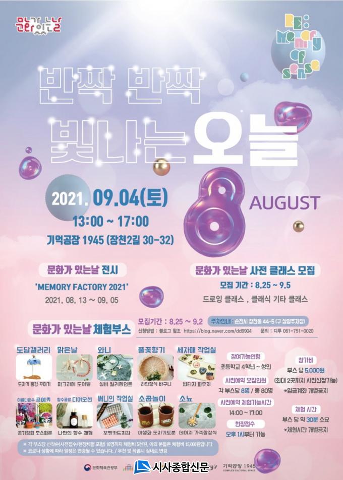 Çà»ç ´çÀÏ¿¡´Â ¹®È¿¹¼úÀ» üÇèÇÒ ¼ö ÀÖ´Â ¿¹¼ú ÀåÅÍ RE:Memory of sense°¡ ¿î¿µµÈ´Ù. ¿¹¼úÀåÅÍ¿¡¼´Â ¿ °÷ÀÇ Ã¼ÇèºÎ½º¿¡¼ ÀÛ°¡¿Í ÇÔ²²ÇÏ´Â ¾ÆÆ® üÇè ºÎ½º·Î Á©¸®ÇÁ¸°Æ® ±â¹ýÀ» Ȱ¿ëÇÑ Ã¥°¥ÇÇ£¦¿±¼ ¸¸µé±â¿Í ÁöÁ¡Å並 Ȱ¿ëÇÑ °ø¿¹ üÇèÀÌ ¿î¿µµÈ´Ù.