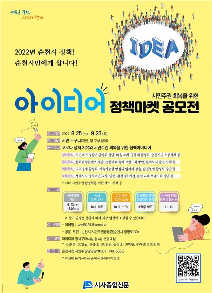 ¼øÃµ½Ã´Â Äڷγª19·Î ½Ã¹ÎµéÀÇ ÀÏ»ó »îÀÌ ¸¹ÀÌ Ä§Ã¼°¡ µÇ°í ½ÃÁ¤ Âü¿©ÀÇ ±âȸµµ ÁÙ¾ú´Ù°í ÆÇ´ÜÇÏ¿©, Á÷Á¢¹ÎÁÖÁÖÀÇ ½ÇÇöÀ» ÅëÇØ À̸¥ ½Ã°£ ³»¿¡ ÀÏ»óÀÇ »îÀ» ȸº¹ÇÏ°í ½Ã¹Îµé¿¡°Ô ²À ÇÊ¿äÇÑ Á¤Ã¥À» ¸¸µé±â À§ÇØ 9¿ù 23ÀϱîÁö Á¤Ã¥ ¾ÆÀ̵ð¾î¸¦ °ø¸ðÇÑ´Ù.