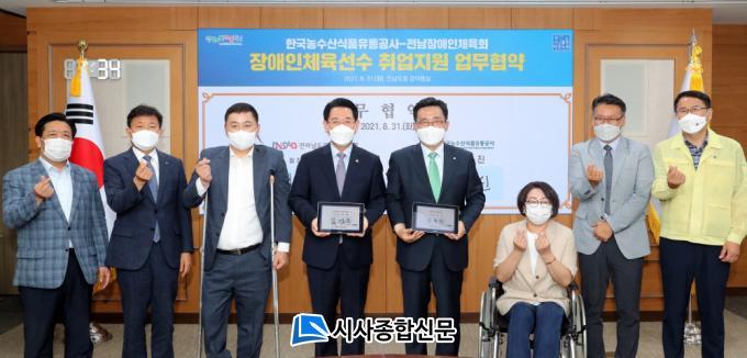 [½Ã»çÁ¾ÇսŹ® = ¿À½ÂÅà ±âÀÚ] Àü¶ó³²µµÀå¾ÖÀÎüÀ°È¸(ȸÀå ±è¿µ·Ï Àü³²µµÁö»ç)¿Í Çѱ¹³ó¼ö»ê½ÄǰÀ¯Åë°ø»ç(»çÀå ±èÃáÁø)´Â 31ÀÏ µµÃ»¿¡¼ Áö¿ªÀå¾ÖÀΠüÀ° ¹ßÀü°ú »ýȰ ¾ÈÁ¤À» À§ÇØ Àå¾ÖÀΠüÀ°¼±¼ö Ãë¾÷À» Áö¿øÇÏ´Â ¾÷¹«Çù¾àÀ» Çß´Ù.