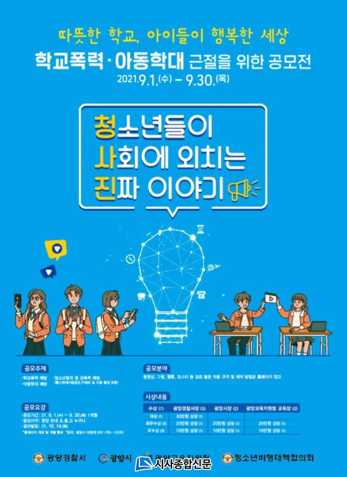 [½Ã»çÁ¾ÇսŹ® = Àå¹Î±Ô ±âÀÚ] ±¤¾ç°æÂû¼(¼Àå ÀåÁø¿µ)´Â ±¤¾ç½Ãû, ±¤¾ç±³À°Áö¿øÃ», û¼Ò³âºñÇà´ëÃ¥ÇùÀÇȸ¿Í °øµ¿À¸·Î ÁÖ°üÇÏ´Â µû¶æÇÑ Çб³¡¤¾ÆÀ̵éÀÌ ÇູÇÑ ¼¼»óÀ» À§ÇÑ¡®Ã»»çÁø¡¯(û¼Ò³âµéÀÌ »çȸ¿¡ ¿ÜÄ¡´Â ÁøÂ¥ À̾߱â) °ø¸ðÀüÀ» ¿À´Â 9.1 ~ 9.30±îÁö ÁøÇàÇÑ´Ù°í ¹àÇû´Ù.