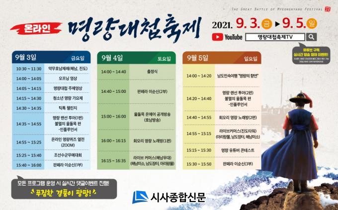 Àü¶ó³²µµ¿Í ÇØ³²±º, Áøµµ±ºÀÌ °øµ¿ ÁÖ°üÇÏ´Â ¸í·®´ëøÃàÁ¦´Â ¡®ºÒ¸êÀÇ ¸í·®! È£±¹ÀÇ ¿ïµ¹¸ñ!¡¯À̶õ ÁÖÁ¦·Î ÁøÇàÇϸç, °ø½Ä À¯Æ©ºê ä³ÎÀÎ ¡®¸í·®´ëøÃàÁ¦TV¡¯¸¦ ÅëÇØ ¸ÅÀÏ ¿ÀÈÄ 2½Ã ¼ÛÃâÇÑ´Ù.