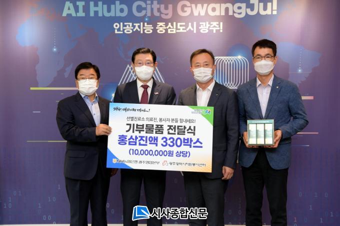 ±¤ÁÖ±¤¿ª½Ã´Â 2ÀÏ ¿ÀÀü ½Ãû Á¢°ß½Ç¿¡¼ NH³óÇùÀºÇà ±¤ÁÖ¿µ¾÷º»ºÎ¿Í ±âʽÄÀ» °¡Á³´Ù. ÀÀ¿ø¹°Ç°Àº ½Ãû ¹× 5°³±¸ ¼±º°°Ë»ç¼Ò ÀÇ·áÁø°ú ºÀ»çÀÚ µî¿¡°Ô Àü´ÞµÉ ¿¹Á¤ÀÌ´Ù.