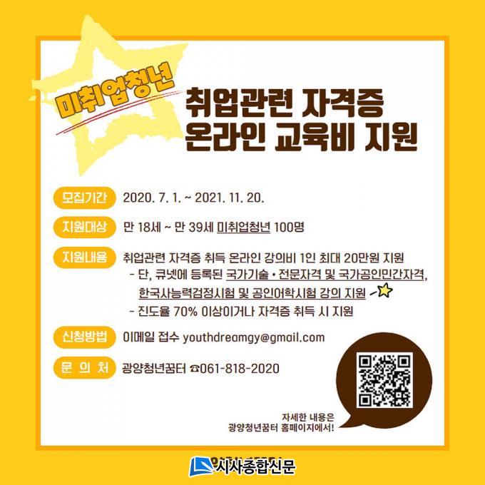 | ±¤¾ç½Ã, ¹ÌÃë¾÷ û³â ¿Â¶óÀÎ ±³À°ºñ È®´ë Áö¿ø Çѱ¹»ç´É·Â°ËÁ¤½ÃÇè, °øÀξîÇнÃÇè ±³À°ºñ±îÁö Áö¿ø |