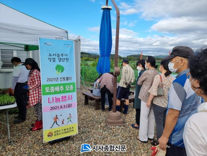 ¼øÃµ½Ã°¡ ÁÖ°üÇÏ°í ¢ß¼øÃµ½Ã·ÎÄÃǪµå, µµ½Ã³ó¾÷°øµ¿Ã¼°¡ Çù¾÷ÇÑ À̹ø Çà»ç¿¡¼ ÅäÁ¾¹èÃß ¸ðÁ¾(û¹æ, ±¸¾ï) 8,000º»À» µµ½ÃÅÔ¹ç ºÐ¾çÀÚ, À¾¸éµ¿ Á÷´É´Üü, ½Ã¹Îµé¿¡°Ô ¹«·á·Î ºÐ¾çÇß´Ù.