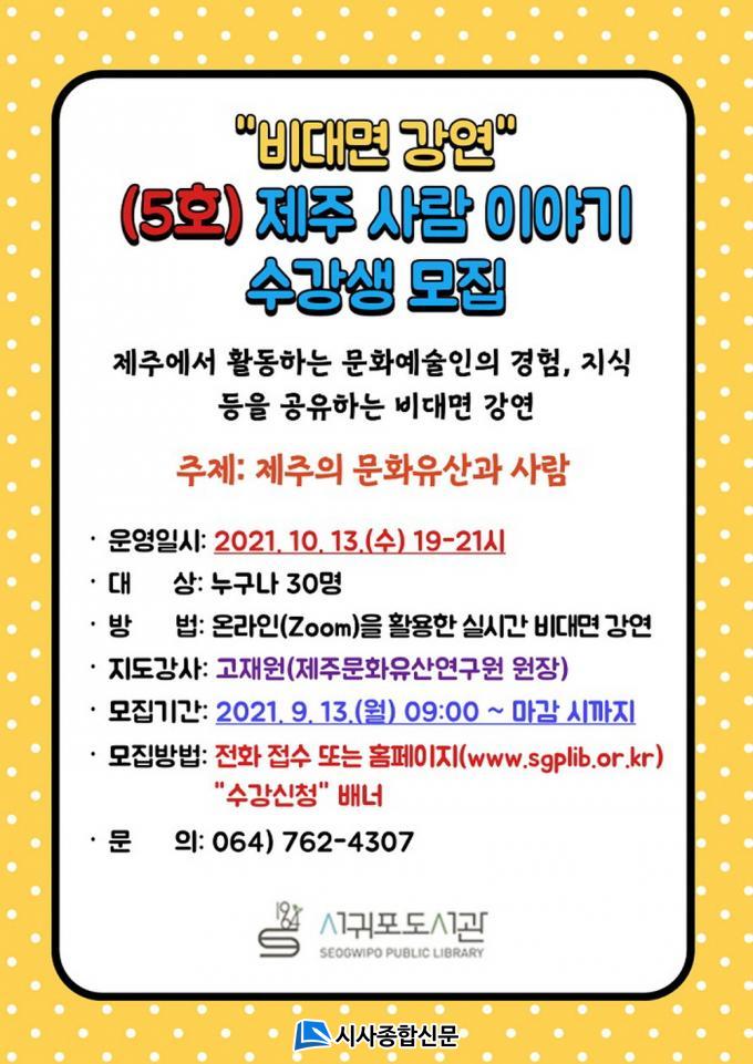 ºñ´ë¸é ¿Â¶óÀÎ(Zoom) ¹æ½ÄÀ¸·Î ÁøÇàµÇ´Â À̹ø °¿¬¿¡¼´Â °íÀç¿ø(Á¦ÁÖ¹®ÈÀ¯»ê¿¬±¸¿ø ¿øÀå) °»ç´ÔÀ» ¸ð½Ã°í¡®Á¦ÁÖÀÇ ¹®ÈÀ¯»ê°ú »ç¶÷¡¯À̶ó´Â ÁÖÁ¦·Î ¿À´Â 10¿ù 13ÀÏ(¼ö) ¿ÀÈÄ 7~9½Ã¿¡ ¿î¿µÇÑ´Ù.