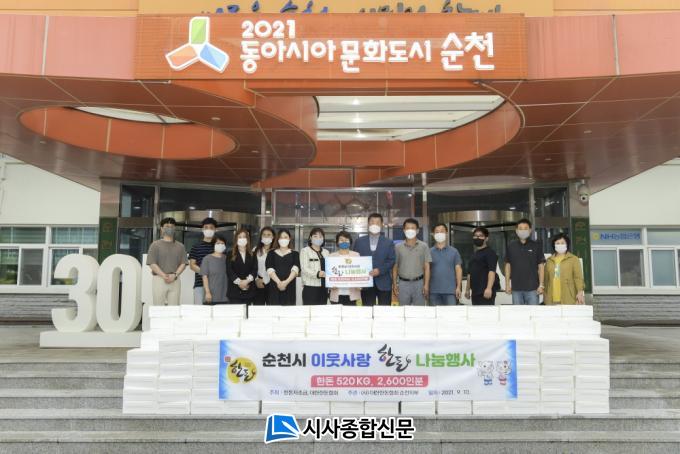 [½Ã»çÁ¾ÇսŹ® = Àå¹Î±Ô ±âÀÚ] (»ç)´ëÇÑÇѵ·Çùȸ ¼øÃµÁöºÎ(ÁöºÎÀå ¼ÕÇöö)¿¡¼ Áö³ 10ÀÏ Ãß¼® ¸íÀýÀ» ¾ÕµÎ°í µÅÁö°í±â 260¹Ú½º(1¹Ú½º´ç 2kg) ÃÑ 520kgÀ» ¼øÃµ½Ã¿¡ ±âŹÇß´Ù.