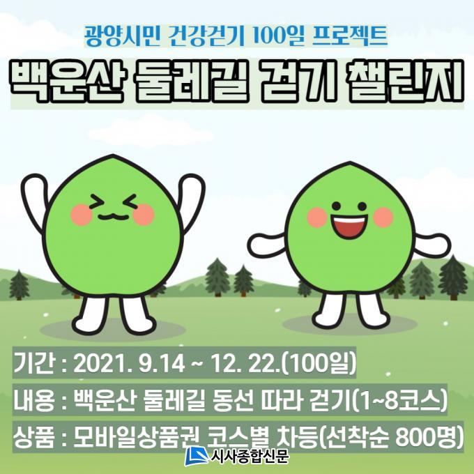 GPS ½ÅÈ£¸¦ ±â¹ÝÀ¸·Î ±¤¾çÀÇ ¸í»ê ¹é¿î»ê µÑ·¹±æ 1~8ÄÚ½º Áß °È±âÁÁÀº±æ ÀϺθ¦ ÁöÁ¤ÇÏ¿© 9¿ù 14ÀϺÎÅÍ 12¿ù 22ÀϱîÁö 100ÀÏ µ¿¾È ÁøÇàµÇ¸ç, Á¤ÇØÁø ±¸°£ 80% ÀÌ»ó °È°í ÄíÆù ¡®¹Þ±â¡¯¸¦ ´©¸£¸é ¼±¹°ÇÔ¿¡ ÄíÆùÀÌ ÀÚµ¿ ¹ß±ÞµÇ´Â °È±â À̺¥Æ®ÀÌ´Ù.
