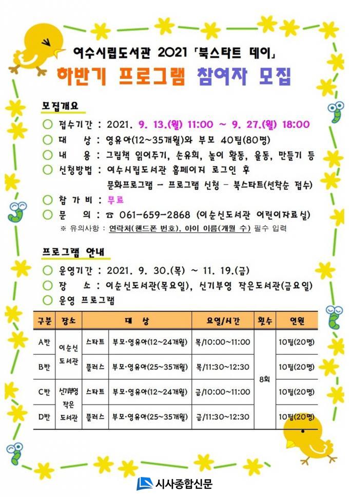 | ¿©¼ö½Ã¸³µµ¼°ü, ¿µÀ¯¾Æ Ã¥³îÀÌ ÇÁ·Î±×·¥ ¡®ºÏ½ºÅ¸Æ® µ¥ÀÌ¡¯ ¿î¿µ 12~35°³¿ù ¿µÀ¯¾Æ¿Í ºÎ¸ð ´ë»ó, Ã¥³îÀÌ ÇÁ·Î±×·¥ 8ÁÖ°£ ¿î¿µ