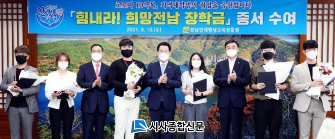 À̳¯ Àü³²µµÃ»¿¡¼ ¿¸° ¼ö¿©½Ä¿¡´Â Àü³²ÀÎÀçÆò»ý±³À°ÁøÈï¿ø ÀÌ»çÀåÀÎ ±è¿µ·Ï Àü³²µµÁö»ç¿Í ÃÖÀÏ µ¿½Å´ë ÃÑÀå, ÀåÇÐ±Ý ¼öÇý ´ëÇлýÀ» ´ëÇ¥ÇÑ Çлý 6¸í µîÀÌ Âü¼®Çß´Ù.