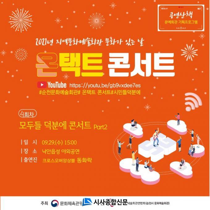 °ø¿¬Àº ³«¾ÈÀ¾¼º ÇöÀå¿¡¼ Á÷Á¢ Áñ±æ ¼ö ÀÖ°í, À¯Æ©ºê ¡®¼øÃµ½Ã ¹®È¿¹¼úȸ°ü¡¯Ã¤³ÎÀ» ÅëÇØ Live ¹æ¼ÛÀ¸·Î ¼ÛÃâµÉ ¿¹Á¤ÀÌ´Ù.