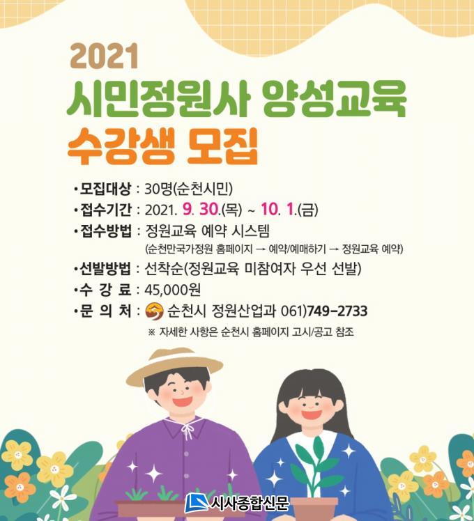 ¼ö°»ý ¸ðÁýÀº ¿À´Â 9¿ù 30Àϰú 10¿ù 1ÀÏ ¾çÀϰ£ ¼øÃµ¸¸±¹°¡Á¤¿ø ȨÆäÀÌÁö ¡®Á¤¿ø±³À° ¿¹¾à½Ã½ºÅÛ¡¯À» ÅëÇØ Á¢¼öÇϸç, ¸ðÁýÀοøÀº 30¸íÀ¸·Î ±âÁ¸ Á¤¿ø±³À°¿¡ Âü¿©ÇÏÁö ¾ÊÀº ¼øÃµ½Ã¹ÎÀ» ¼±Âø¼øÀ¸·Î ¼±¹ßÇÑ´Ù.