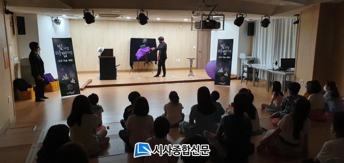 °ø¿¬Àº Äڷγª19 »óȲÀ» °í·ÁÇØ Âü¿© ÀοøÀ» 40¸íÀ¸·Î Á¦ÇÑÇÏ°í ¹ß¿ üũ, ¼Õ ¼Òµ¶ µî ¹æ¿ªÁöħÀ» ÁؼöÇÑ °¡¿îµ¥ ÁøÇàÇßÀ¸¸ç, ºûÀ» ÀÌ¿ëÇÑ ¸¶¼ú °ø¿¬°ú ¾î¸°À̵éÀÌ Á÷Á¢ ¸¶¼úÀ» ¹è¿öº¸°í ºûÀ¸·Î ±×¸²À» ±×¸®´Â üÇè ½Ã°£À¸·Î ¿î¿µÇß´Ù.