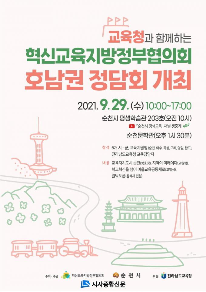 ¿À´Â 9¿ù 29ÀÏ(¼ö) ¿ÀÀü 10½Ã¿¡ °³ÃֵǴ À̹ø È£³²±Ç Á¤´ãȸ´Â °¢ ÁöÀÚü ±³À° °ü°èÀÚµéÀÌ Âü¿©ÇÏ¿© Çõ½Å±³À° ÇöȲ ¹× ¼º°ú¸¦ °øÀ¯ÇÏ°í ¿øÅ¹Åä·ÐÀ» ÅëÇØ ±³À°À¸·Î Áö¿ªÀ» »ì¸®´Â ¹æ¾ÈÀ» ³íÀÇÇÑ´Ù.