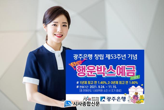 ±¤ÁÖÀºÇàÀº Áö³ 8¿ù 18ÀϺÎÅÍ 9¿ù 23ÀϱîÁö ÃÑ 1õ¾ï¿ø Çѵµ·Î Á¤±â¿¹±Ý¿¡ Ãß°¡ ¿ì´ë±Ý¸®¸¦ Á¦°øÇϴ Ưº°ÆÇ¸Å¸¦ ¸¶°¨ÇÏ¿´À¸¸ç, °í°´µéÀÇ Ãß°¡¿äû ¹× ⸳ 53Áֳ⿡ ¸ÂÃç Æ¯ÆÇ¿¹±ÝÀ» Ãß°¡·Î ÆÇ¸ÅÇÑ´Ù°í ¹àÇû´Ù.