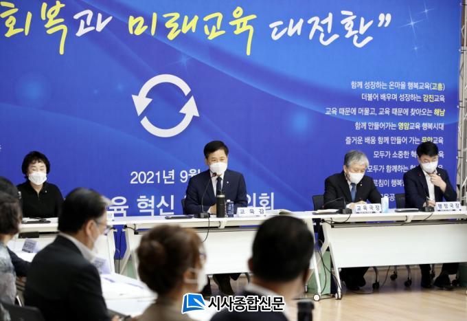 Àå¼®¿õ ±³À°°¨Àº ¡°Äڷγª19·Î ÀÎÇÑ ÇнÀ°á¼Õ ¹× ½É¸®¡¤Á¤¼ ¹®Á¦¸¦ ÁßÁ¡ Áö¿øÇϱâ À§ÇÑ ±³À°È¸º¹¹æ¾È, µðÁöÅÐ ´ëÀüȯ½Ã´ë¿¡ ´ëÀÀ ¿ª·® °È¹æ¾ÈÀÌ ±¸Ã¼È µÇ¾î ÇöÀå¿¡ ½º¸çµé°í ÀÖ´Ù¸ç, Àü³²±³À° Á¤Ã¥ÀÇ Àü¸éÀû ÆÐ·¯´ÙÀÓ ÀüȯÀ¸·Î ³ª¾Æ°¥ ¼ö ÀÖµµ·Ï Á¶Á÷ÀÇ ¸ðµç ±¸¼º¿øµéÀÌ Çù¾÷À» ³Ñ¾î ¿ø ÆÀÀ¸·Î Çб³ ÇöÀåÀ» Áö¿øÇØ ÁÖ±æ ¹Ù¶õ´Ù.¡±°í ¸»Çß´Ù.