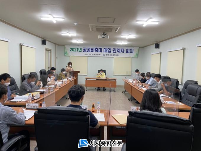 ȸÀÇ¿¡´Â ³ó°ü¿ø, Áö¿ª³óÇù, À¾¸éµ¿ °ü°èÀÚ µîÀÌ Âü¼®ÇßÀ¸¸ç, Á¤ºÎ ¹èÁ¤¹°·®ÀÎ Á¶°î 1,336Åæ(33,411°¡¸¶/40kg)À» ¸ÅÀÔÇϱâ·Î °áÁ¤Çß´Ù.