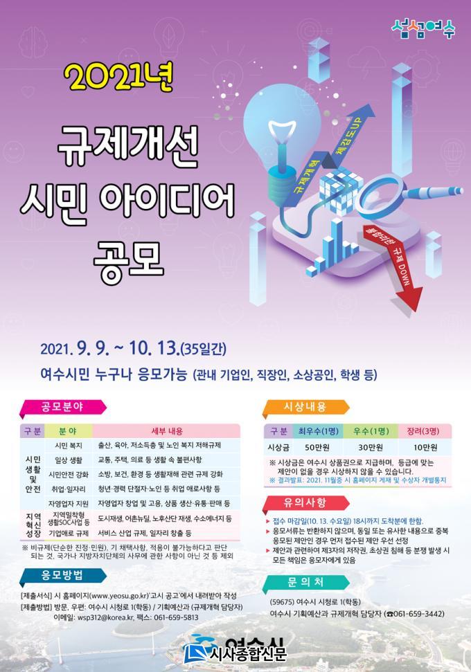 Âü¿© ¹æ¹ýÀº ¿©¼ö½Ã ȨÆäÀÌÁö ¡®°í½Ã°ø°í¡¯¶õ¿¡¼ ¼½ÄÀ» ³»·Á¹Þ¾Æ ¹æ¹®, ¿ìÆí(59675, ¿©¼ö½Ã ½Ãû·Î1(Çе¿), ¿©¼ö½Ãû ±âȹ¿¹»ê°ú), À̸ÞÀÏ(wsp312@korea.kr), ÆÑ½º(061-659-5813) µîÀ¸·Î Á¦ÃâÇÏ¸é µÈ´Ù.