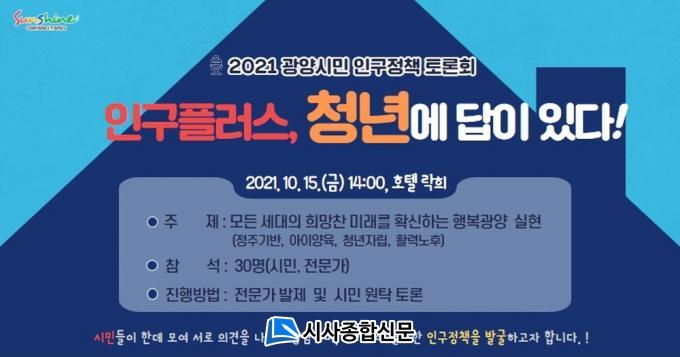 ±¤¾ç½Ã Àα¸Á¤Ã¥À» ³íÇÏ´Â À̹ø ½Ã¹Î Åä·Ðȸ´Â 30¿© ¸íÀÌ Á÷Á¢ Âü¿©Çϸç, ´ëÅë·É Á÷¼Ó ÀúÃâ»ê¡¤°í·É»çȸÀ§¿øÈ¸ ºÐ°úÀ§¿ø°ú ±¤ÁÖÀü³²¿¬±¸¿ø Àü¹®°¡°¡ ½Ã¹Î ÀǰßÀ» µè°í, Àǰ߿¡ ±â¹ÝÇÑ ½ÃÃ¥À» ¹ß±¼ÇÒ ¿¹Á¤ÀÌ´Ù.