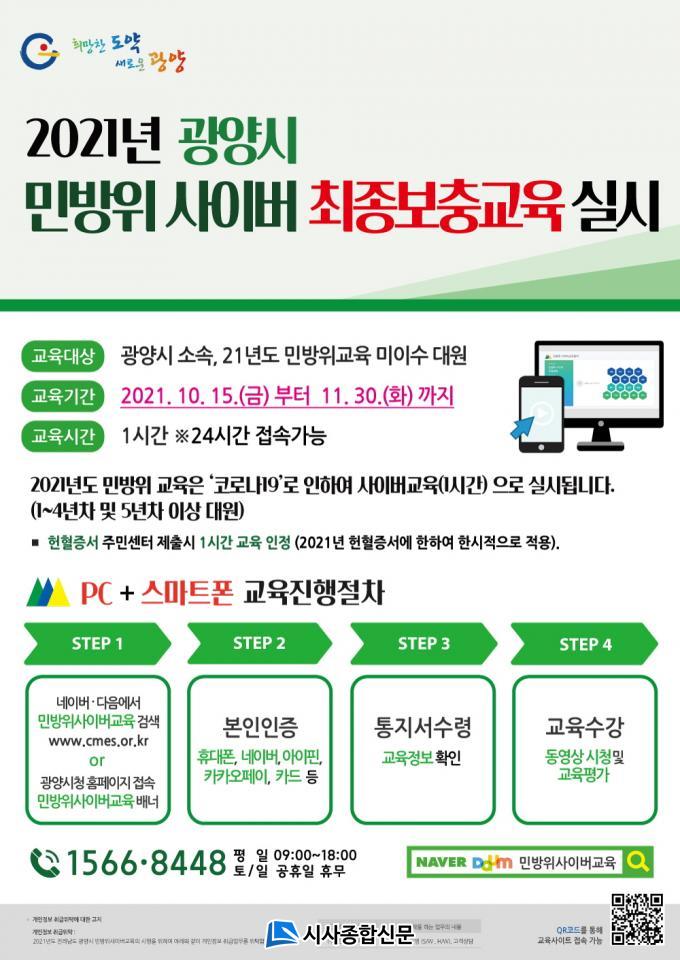 [½Ã»çÁ¾ÇսŹ® = Àå¹Î±Ô ±âÀÚ] ±¤¾ç½Ã´Â ÇϹݱ⠹ιæÀ§ »çÀ̹ö º¸Ãæ 2Â÷ ±³À°À» º» ±³À° ¹× º¸Ãæ 1Â÷ ±³À° ¹ÌÀ̼öÀÚ¸¦ ´ë»óÀ¸·Î 10¿ù 15ÀÏ~11¿ù 30ÀÏ ½Ç½ÃÇÑ´Ù.