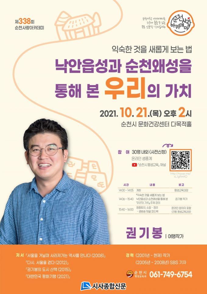 Á¦338ȸ ¼øÃµ»ç¶û¾ÆÄ«µ¥¹Ì´Â ÀÛ°¡ÀÌÀÚ ¿ª»ç¿©Çà°¡·Î ¸í¼ºÀÌ ³ôÀº ±Ç±âºÀ ÀÛ°¡¸¦ ÃÊûÇÏ¿© <Àͼ÷ÇÑ °ÍÀ» »õ·Ó°Ô º¸´Â ¹ý-³«¾ÈÀ¾¼º°ú ¼øÃµ¿Ö¼ºÀ» ÅëÇØ º» ¡®¿ì¸®¡¯ÀÇ °¡Ä¡>¶ó´Â ÁÖÁ¦·Î ÁøÇàµÈ´Ù.