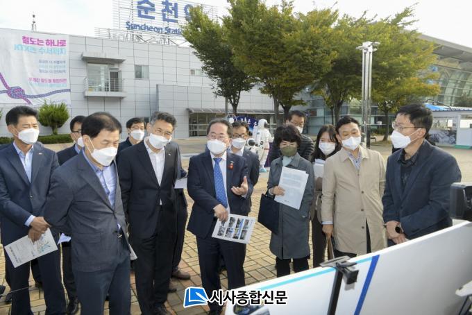 ÇöÀå¿¡ Âü¼®ÇÑ ÀÓ俵 ºÎ½ÃÀåµµ ¡°¼øÃµ¿ª¿¡¼ Ãâ¹ßÇÏ¿© ¿ªÀü ½Ì½Ì°Å¸®, µ¿Ãµ Á¤¿ø±æ°ú Á¤¿ø¹Ú¶÷ȸ ÇöÀåÀ¸·Î À̾îÁö´Â ÀÏ·ÃÀÇ µ¿¼±ÀÌ ÀÚ¿¬½º·´°Ô ¿¬°áµÉ ¼ö ÀÖµµ·Ï È«º¸ÇÏ°í °ø°£ ±¸¼ºÀ» °ËÅäÇØ¾ß ÇÑ´Ù.¡±°í °Á¶Çß´Ù.