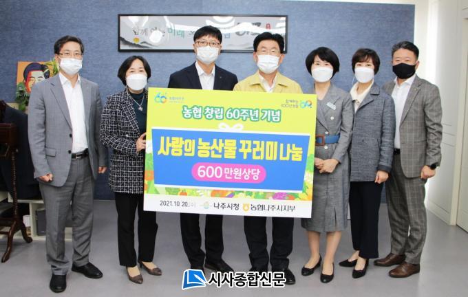 [½Ã»çÁ¾ÇսŹ® = À¯µ¿±¹ ±âÀÚ] NH³óÇùÀºÇà ³ªÁÖ½ÃÁöºÎ(ÁöºÎÀå ¹Ú³»Ãá)°¡ ³óÇù ⸳ 60ÁÖ³âÀ» ±â³äÇØ Áö¿ª»çȸ¿Í »ó»ý ³ª´®À» ½ÇõÇß´Ù.