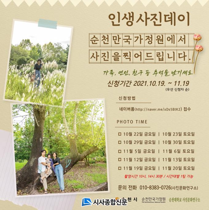 ¼±Á¤ÀÚ¿¡°Ô´Â ¼øÃµ´ëÇб³ »çÁø¿¹¼úÇаú û³âÀÛ°¡µéÀÌ Àλý»çÁø Æ÷ÀÎÆ® ¾à 5~10°÷¿¡¼ ÃÔ¿µ ¼ºñ½º¸¦ Á¦°øÇÑ´Ù. ÃÔ¿µÇÑ »çÁøÀº ¼øÃµ¸¸±¹°¡Á¤¿ø È«º¸¿¡ Ȱ¿ëÇÒ °èȹÀÌ´Ù.