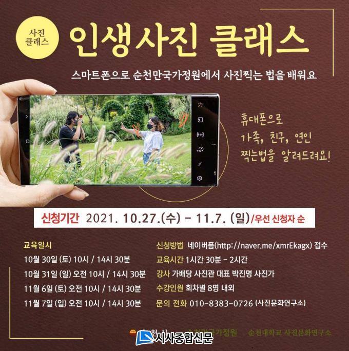 Àλý»çÁøÅ¬·¡½º´Â »çÁø Àü¹®°¡°¡ ¼øÃµ¸¸±¹°¡Á¤¿ø¿¡¼ ¿Ã°¡À» ÃÖ°íÀÇ Àλý»çÁø Âï´Â ±â¼úÀ» ¼Ò°³Çϰí, Á÷Á¢ ½Ç½ÀÇØº¸´Â ÇÁ·Î±×·¥ÀÌ´Ù. ³²ÀÌ ÂïÀº »çÁø¿¡ ºÎ·¯¿ò¸¸ ´À²¼´ø ´©±¸³ª Ä«¸Þ¶ó°¡ ¾ø¾îµµ ¹è¿ï ¼ö ÀÖ°í, ¿Ã°¡À» ÃÖ°íÀÇ ¸íÀÛÀ» ³²±æ ¼ö ÀÖ´Ù.