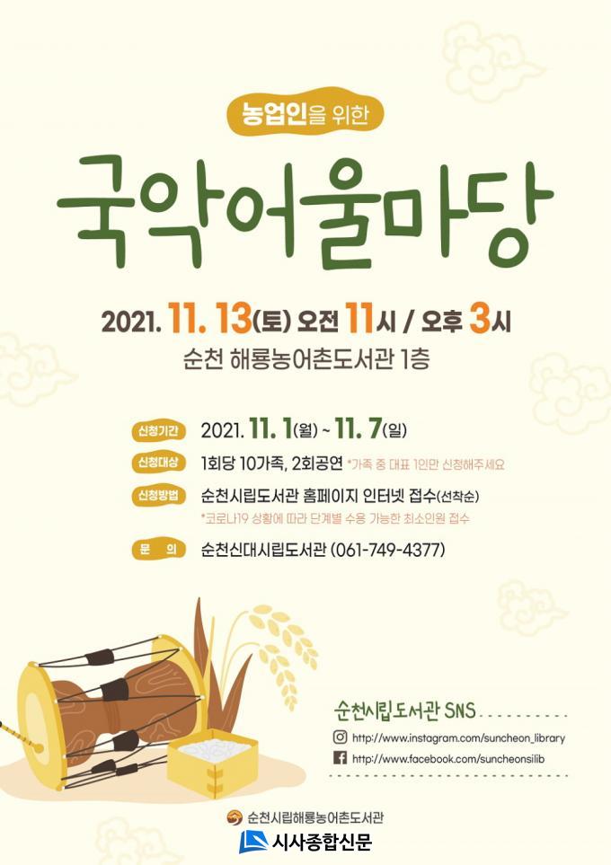 | ¼øÃµ½Ã, ³ó¾÷ÀÎÀÇ ³¯ ±â³ä ¡®±¹¾Ç°ø¿¬¡¯ °³ÃÖ 11¿ù 13ÀÏ ÇØ·æ³ó¾îÃ̵µ¼°ü¿¡¼ ¡®±¹¾Ç¾î¿ï¸¶´ç¡¯