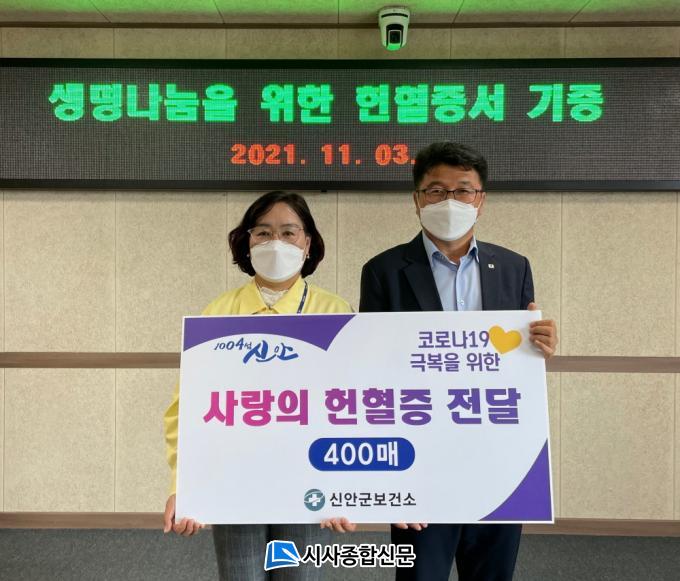 [½Ã»çÁ¾ÇսŹ® = ¿À½ÂÅà ±âÀÚ] ½Å¾È±º(±º¼ö ¹Ú¿ì·®)Àº Äڷγª19 Àå±âÈ·Î ÀÎÇÑ Ç÷¾×¼ö±ÞÀÇ ¾î·Á¿ò ±Øº¹¿¡ µ¿ÂüÇϰíÀÚ ÇåÇ÷Çà»ç¸¦ ÅëÇØ ±âÁõ¹ÞÀº ÇåÇ÷Áõ¼ 400¸Å¸¦ ´ëÇÑÀû½ÊÀÚ»ç ±¤ÁÖÀü³² Ç÷¾×¿ø¿¡ ±âÁõÇÑ´Ù°í ¹àÇû´Ù.