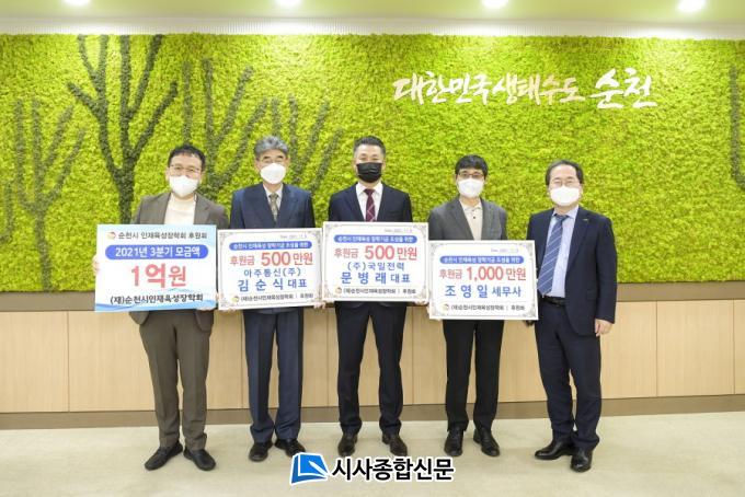 [½Ã»çÁ¾ÇսŹ® = Àå¹Î±Ô ±âÀÚ] Àç´Ü¹ýÀÎ ¼øÃµ½ÃÀÎÀçÀ°¼ºÀåÇÐȸ(ÀÌ»çÀå Çã¼®)´Â 9ÀÏ ¼øÃµ½Ã ÀÎÀç À°¼ºÀ» À§ÇÑ ÀåÇÐȸÈÄ¿ø±ÝÀ» Àü´Þ¹Þ¾Ò´Ù.