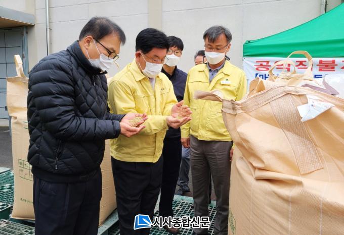 ÇÑÆí, °ÀÎ±Ô ³ªÁÖ½ÃÀåÀº À̳¯ ¿ÀÀü ºÀȲ °ø°øºñÃà¹Ì°î ¸ÅÀÔ ÇöÀåÀ» ¹æ¹®ÇØ ¿Ã ÇÑ ÇØ ¿µ³ó ÇöÀå¿¡¼ ±¸½½¶¡À» È기 ³ó¾÷ÀεéÀ» °Ý·ÁÇÏ°í ¾Ö·Î»çÇ×À» ûÃëÇß´Ù. ¡°Äڷγª19 Àå±âÈ¿Í ³óÃÌ Àη³°ú °°Àº ¾î·Á¿î ¿©°Ç ¼Ó¿¡¼µµ ±¹°¡ »ý¸í»ê¾÷ ¼öÈ£¸¦ À§ÇÑ ³ó¾÷ÀÎÀÇ °ªÁø ¶¥¹æ¿ïÀÌ °á½ÇÀ» Àß ¸ÎÀ» ¼ö ÀÖµµ·Ï °ø°øºñÃà¹Ì°î ¸ÅÀÔÀ» Â÷Áú¾øÀÌ ÃßÁøÇذ¡°Ú´Ù¡±°í ¸»Çß´Ù.