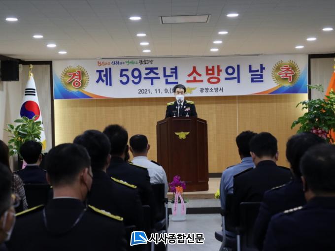[½Ã»çÁ¾ÇսŹ® = Àå¹Î±Ô ±âÀÚ] ±¤¾ç¼Ò¹æ¼(¼Àå ÃÖÇö°æ)´Â 9ÀÏ ¼Ò¹æ¼ 3Ãþ ´ëȸÀǽǿ¡¼ ¼Ò¹æ°ø¹«¿ø, ÀÇ¿ë¼Ò¹æ´ë¿ø µî 40¿©¸íÀÌ Âü¼®ÇÑ °¡¿îµ¥ ¡®Á¦59Áֳ⠼ҹæÀÇ ³¯¡¯ ±â³äÇà»ç¸¦ °³ÃÖÇß´Ù.