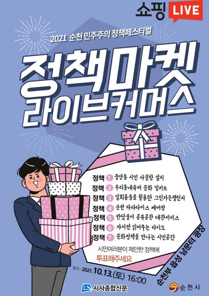 ÇÑÆí, ¼øÃµ½Ã´Â ¿À´Â 13ÀÏ ¿ÀÀü 10½ÃºÎÅÍ ¼øÃµºÎ À¾¼º ³²¹®ÅÍ ±¤Àå¿¡¼ ¡®¹ÎÁÖÁÖÀÇ ²ÉÀÌ ÇǾú½À´Ï´Ù in ¼øÃµ¡¯¶ó´Â ÁÖÁ¦·Î 2021 ¼øÃµ ¹ÎÁÖÁÖÀÇ Á¤Ã¥Æä½ºÆ¼¹ú°ú ÀÚÄ¡¹Ú¶÷ȸ¸¦ ÇÔ²² °³ÃÖÇÑ´Ù. ¶óÀ̺ê Ä¿¸Ó½º ¹æ½ÄÀÇ Á¤Ã¥¸¶ÄÏ ¿î¿µÀº ¹°·Ð ½Ã¹Î °ø·ÐÀå, ¹ÎÁÖÁÖÀÇ ¹è¿òÅÍ, üÇèºÎ½º µîÀÇ ´Ùä·Î¿î ÇÁ·Î±×·¥À» ¸¸³ªº¼ ¼ö ÀÖ´Ù.