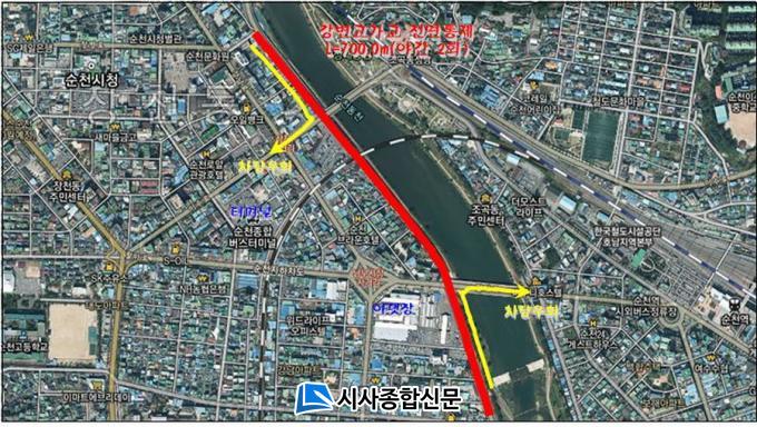 ¼øÃµ½Ã´Â ½Ã¹ÎµéÀÇ ºÒÆíÀ» ÁÙÀ̱â À§ÇØ 20ÀÏ 00½ÃºÎÅÍ 06½Ã±îÁö ¾ß°£¡¤»õº®½Ã°£´ë¿¡ °º¯°í°¡µµ·Î ¿Õº¹2Â÷¼± 700m ±¸°£ÀÇ Â÷·®ÅëÇàÀ» Àü¸é ÅëÁ¦ÇÏ°í ½ÅÈ£¼ö¸¦ ¹èÄ¡ÇÏ¿© Â÷·® ¿ìȸ¸¦ ¾È³»ÇÑ´Ù.