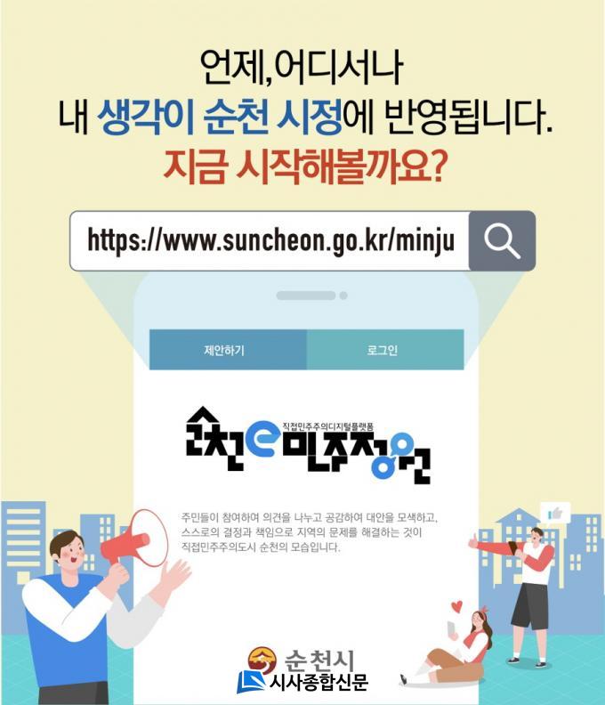 ¼øÃµ½Ã °ü°èÀÚ´Â ¡°¿ÃÇØ ¸»±îÁö ¡®¼øÃµe¹ÎÁÖÁ¤¿ø¡¯ ½Ã¹ü¿î¿µÀ» ÅëÇØ ¹ÌÈíÇÑ Á¡Àº ´õ °³¼±¡¤º¸¿ÏÇØ ³ª°¡°Ú´Ù.¡±¸é¼ ¡°½Ã¹ÎÀÌ ½ÃÁ¤ÀÇ ÁÖÀÎÀ¸·Î¼ ¾ðÁ¦, ¾îµð¼³ª ½ÃÁ¤À» Á¦¾ÈÇϰí Âü¿©ÇÒ ¼ö ÀÖµµ·Ï ¡®¼øÃµe¹ÎÁÖÁ¤¿ø¡¯È°¼ºÈ¸¦ ÅëÇØ »ýȰ ¼Ó Á÷Á¢¹ÎÁÖÁÖÀǰ¡ ½ÇÇöµÉ ¼ö ÀÖµµ·Ï ³ë·ÂÇϰڴÙ.¡±°í ¸»Çß´Ù.