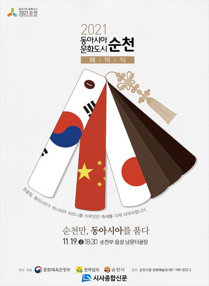 ¼øÃµ½Ã(½ÃÀå Çã¼®)´Â 2021 µ¿¾Æ½Ã¾Æ¹®Èµµ½ÃÀÇ ¸¶Áö¸·À» Àå½ÄÇÒ Æó¸·½ÄÀ» ¿À´Â 19ÀÏ ¼øÃµºÎ À¾¼º ³²¹®ÅÍ ±¤Àå¿¡¼ °³ÃÖÇÑ´Ù.