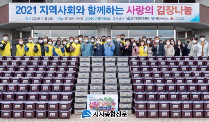 ±¤¾çÁ¦Ã¶¼Ò »ç¶û³ª´©±â ºÀ»ç´Ü°ú ¿©¼ö±¤¾çÇ׸¸°ø»ç ºÀ»ç´ÜÀº Àü´Þ½ÄÀÌ ³¡³ ÈÄ ÇϳªÇϳª Á¤¼º½º·´°Ô ´ã±Ù ¡®»ç¶ûÀÇ ±èÀå±èÄ¡¡¯ 4,000Æ÷±â(ÃÑ 1,000Åë)¸¦ ±¤¾ç½Ã »çȸº¹Áö½Ã¼³ ÃÑ 23 °÷°ú º¸»ìÇËÀÌ ÇÊ¿äÇÑ ÀÌ¿ô ¾à 530¼¼´ë¿¡°Ô Àü´ÞÇß´Ù.