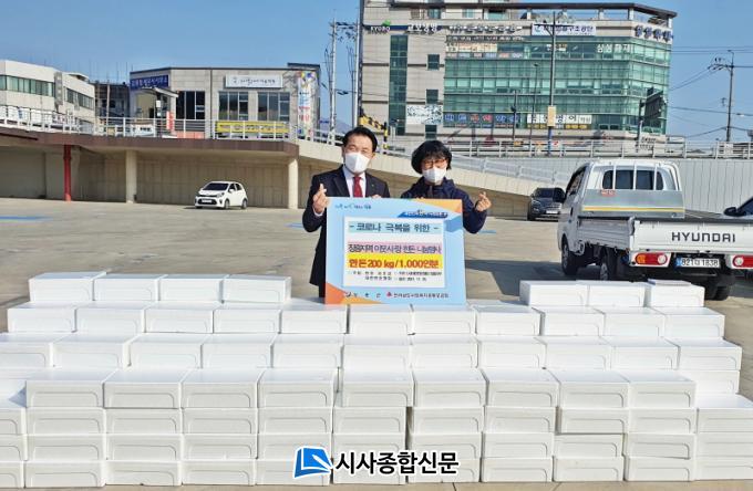 [½Ã»çÁ¾ÇսŹ® = ¿À½ÂÅà ±âÀÚ] (»ç)´ëÇÑÇѵ·Çùȸ ÀåÈﱺÁöºÎ(ÁöºÎÀå ¼µÎ¼®)´Â Áö³ 18ÀÏ ±º¹ÎÀÇ Äڷγª19 ±Øº¹°ú °Ç°ÇÑ °Ü¿ï³ª±â¸¦ À§ÇÑ ±èÀåÇà»ç¿¡ µÅÁö°í±â 700kg(3,500ÀκÐ)À» ÀåÈﱺ¿¡ ±âŹÇß´Ù.