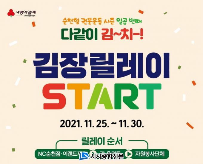 ¡®´Ù°°ÀÌ ±è-Ä¡-!¡¯´Â Àϰö ¹øÂ° ¼øÃµÇü ±ÇºÐ(ÏèÝÂ)¿îµ¿À¸·Î, ¾î·Á¿î ÀÌ¿ô¿¡°Ô ±èÀå ±èÄ¡¸¦ Àü´ÞÇϰíÀÚ ½ÃÀ۵ƴÙ. ¼øÃµ½Ã¹ÎÀÇ ¶ß°Å¿î È£ÀÀ¿¡ ÈûÀÔ¾î ÇÑ ´Þ¿©°£ ÃÑ 1¾ï ¿ø ÀÌ»óÀÇ ±âºÎ±ÝÀÌ ¸ð¿´´Ù.